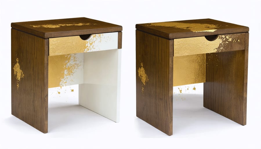 Transform ordinary items into luxurious showpieces with the timeless elegance of gold leaf and metallic finishes. Start by gathering your materials: gold leaf sheets, adhesive size, a soft brush, and sealer. For best results, ensure your surface is clean, smooth, and primed.