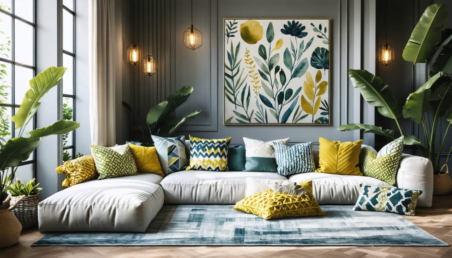 Start with a dominant pattern that speaks to your style – perhaps a large-scale floral on window treatments or a striking ikat on accent pillows. Layer complementary patterns by varying their scale: combine large, medium, and small designs while maintaining a cohesive color story. Consider texture as a pattern itself – basketweave throws, nubby bouclé upholstery, and dimensional jacquards add sophisticated complexity without overwhelming the eye.