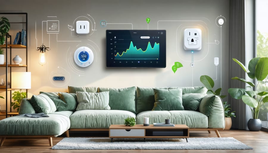 Smart thermostats learn your schedule and automatically adjust temperatures, cutting heating and cooling expenses by up to $180 annually. Motion-sensing lights eliminate wasted electricity in empty rooms, while smart plugs monitor and control energy-hungry appliances even when you’re away. These intelligent devices work seamlessly together, providing real-time energy usage data through smartphone apps that help you make informed decisions about your home’s efficiency.
